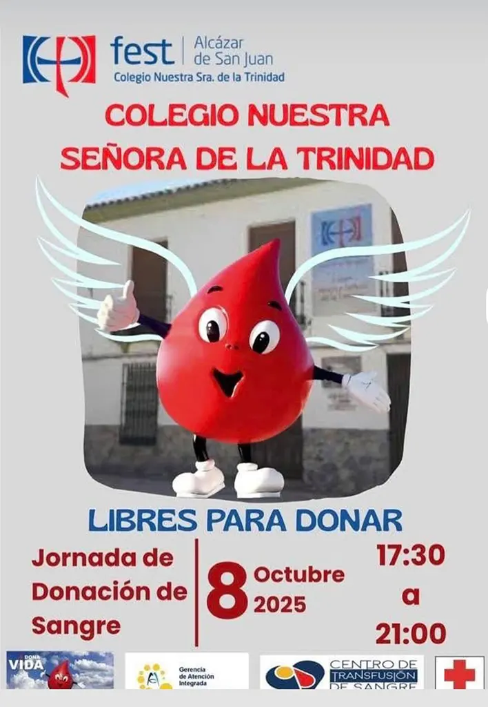 Ayer, día 8 de octubre, se celebró en el Colegio Nuestra Señora de la Trinidad de Alcázar de San Juan una jornada extraordinaria de donación de sangre, impulsada bajo el lema “Libres para donar”, con el objetivo de concienciar sobre la importancia de mantener los bancos de sangre con niveles óptimo y, sobre todo, animar a futuros donantes a participar y conocer sus beneficios.