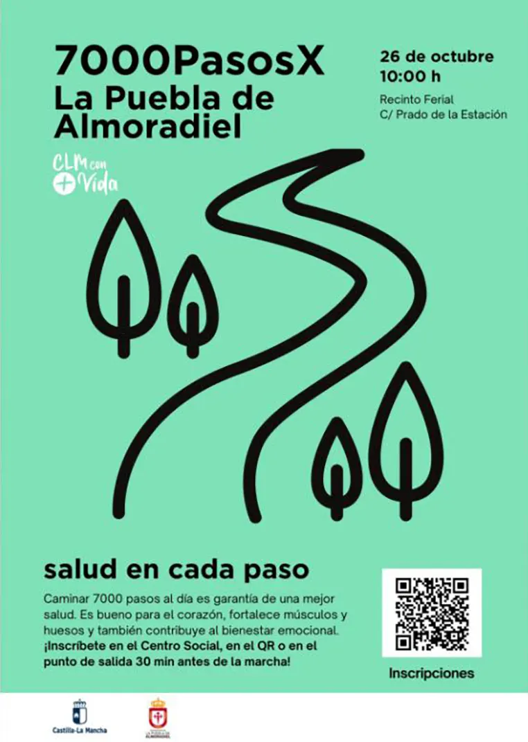 El próximo domingo 26 de octubre, Puebla de Almoradiel acogerá la marcha saludable 7000 PasosX, dentro del marco del Plan de Salud de Castilla-La Mancha Horizonte 2025.